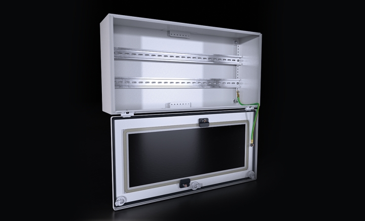 - Wall-Mounted Indoor Enclsoure – Quarter-Turned Screwed- 180° Hinged Glazed Door up to down
